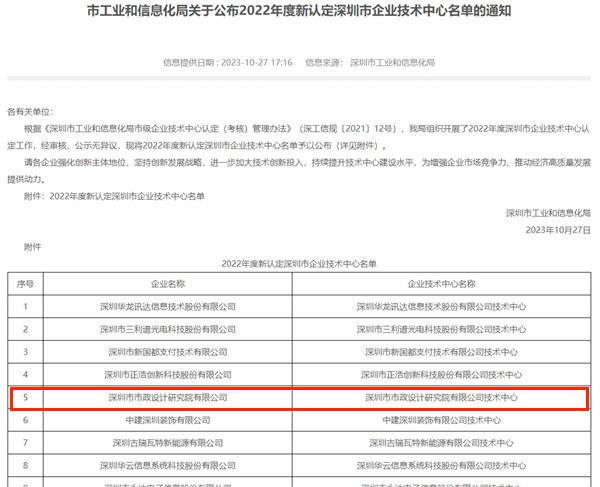 2023年10月27日,深圳市工業(yè)和信息化局發(fā)布了《市工業(yè)和信息化局關(guān)于公布2022年度新認(rèn)定深圳市企業(yè)技術(shù)中心名單的通知》,公司被認(rèn)定為“深圳市企業(yè)技術(shù)中心”。