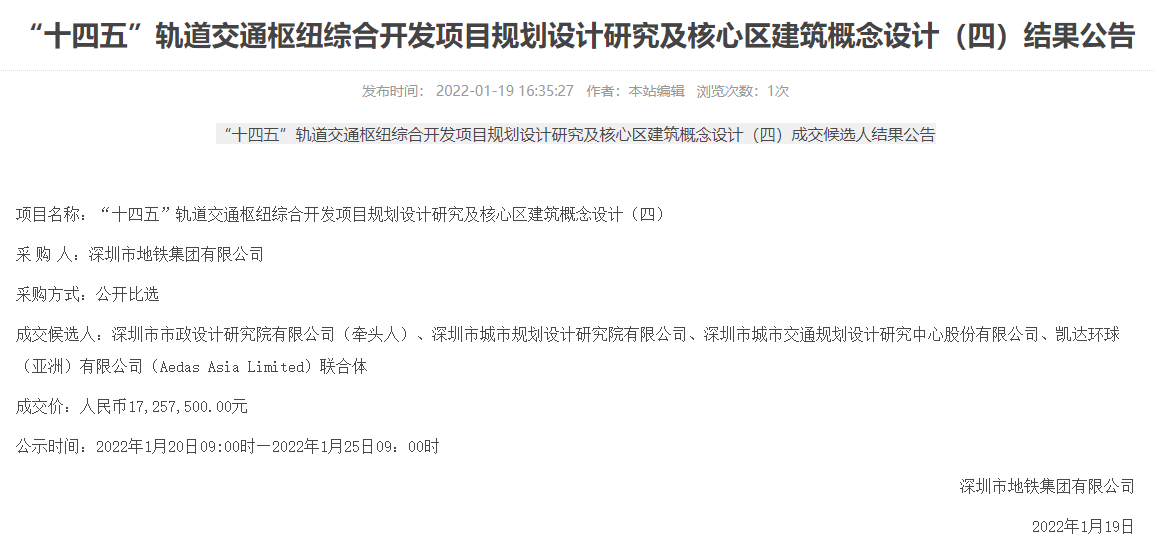日前,經深圳市地鐵集團有限公司官網中標公示通過,深圳市政院軌道交通院作為聯合體牽頭方參投的“‘十四五’軌道交通樞紐綜合開發項目規劃設計研究及核心區建筑概念設計(四)”喜獲中標,中標金額...