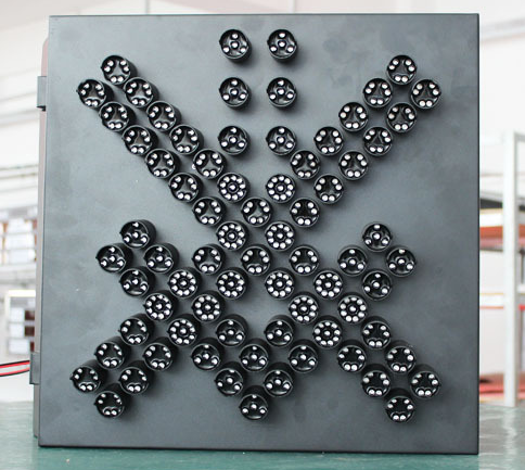 產(chǎn)品組件:車道信號燈由燈芯、燈殼、遮陽罩、配件等組成,燈色由紅、綠兩種組成.