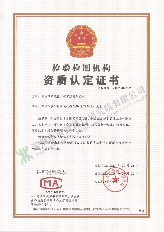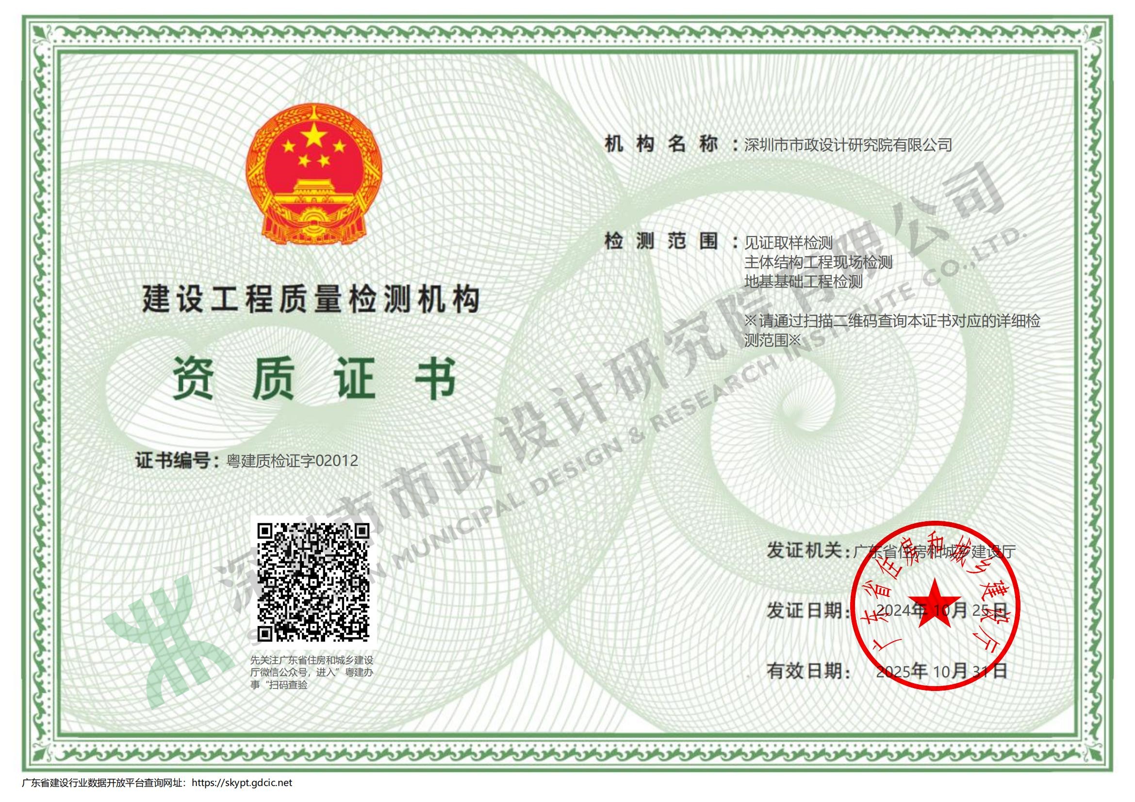 建設工程質(zhì)量檢測機構資質(zhì)證書