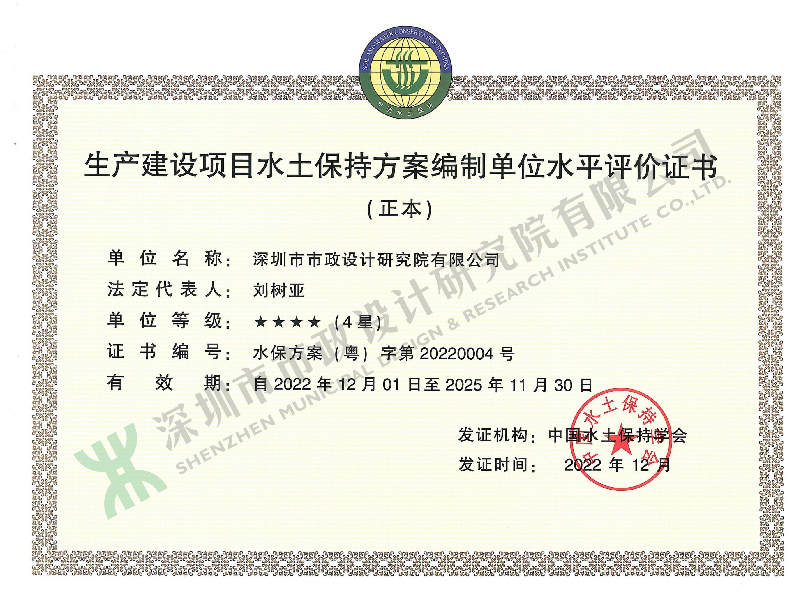 生產(chǎn)建設項目水土保持方案編制單位水平評價證書