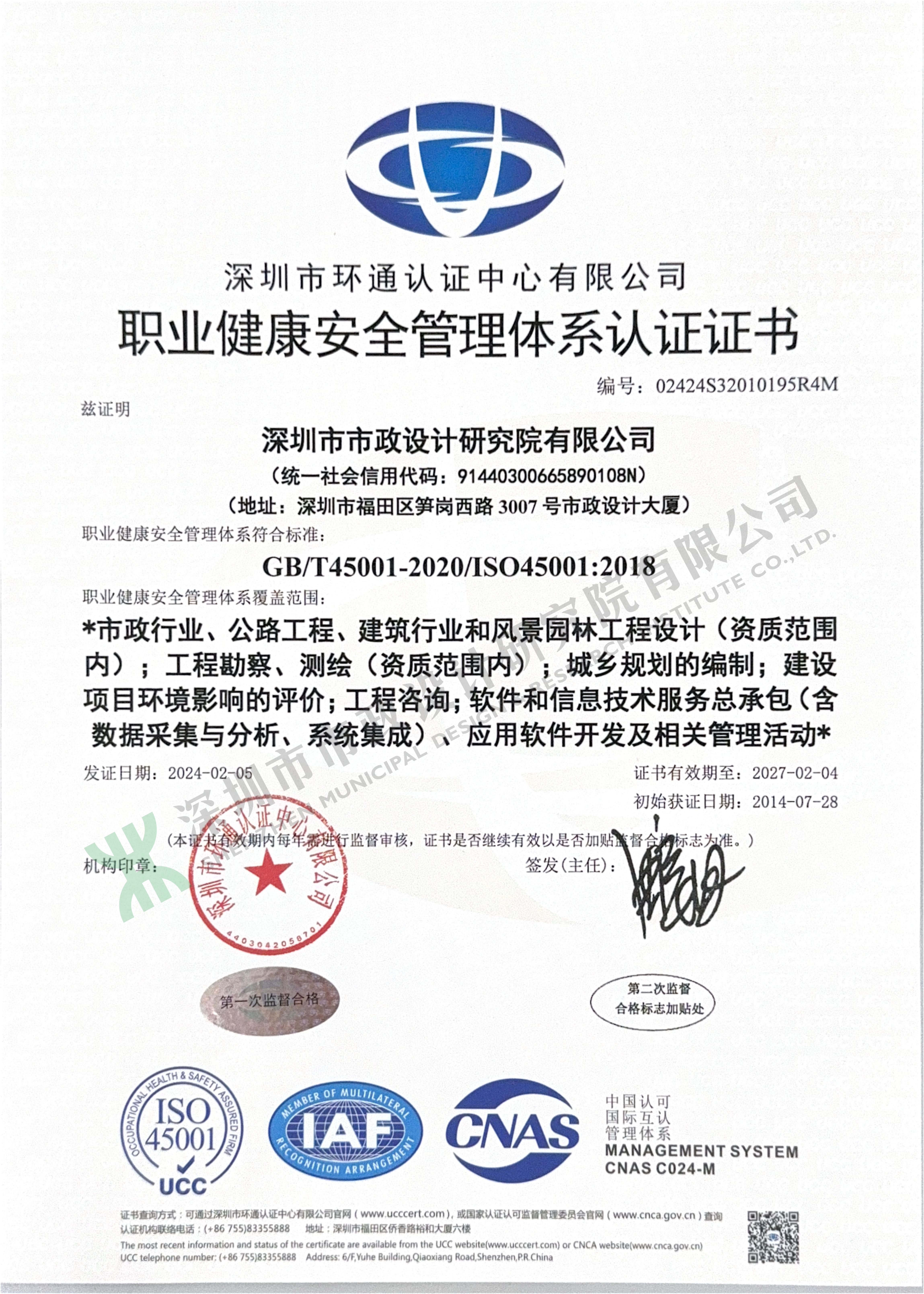 職業健康安全管理體系認證證書