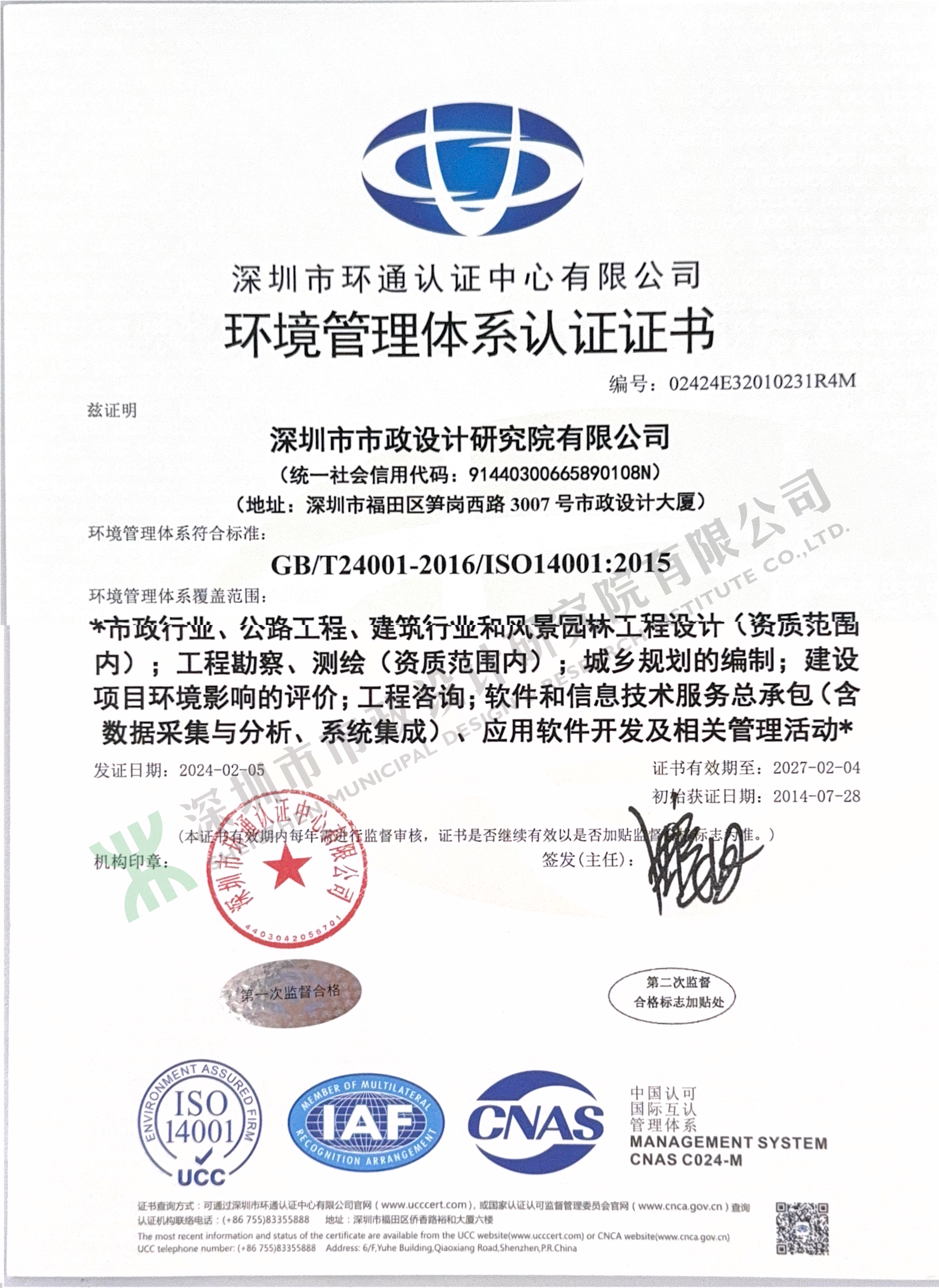 環境管理體系認證證書