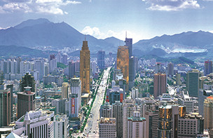 深南大道是深圳市東西向城市客運主干道,東起沿河路新秀立交,向西途經:羅湖區國貿大廈~老街商業中心、帝王大廈~小平廣場金融中心、華強北電子元器件交易中心、深圳市行政中心、車公廟~竹子林交通樞紐、華僑城旅游娛樂中心、深圳高新技術產業園~大學城區、南頭城~南山商業中心,在南頭聯檢站與107國道相接,全長25千米(雙向8~10車道,路幅寬約50~135米)。該道路沿線絢麗多姿的綠化和點綴其間的小品、新穎漂亮的燈飾、整齊清晰的交通標志、先進的交通監控系統等有機地將人與車融合到環境之中、動態美與環境美相互交融,是國內不可多得的園林式道路、深圳市一道靚麗的風景線。